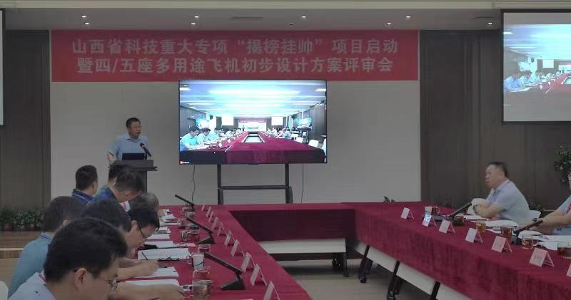 2022年6月27日上午,由yL23411永利官网登录科研团队牵头,西北工业大学、南京航空航天大学及太原航空仪表有限公司多家单位共同参与的,山西省科技重大专项“揭榜挂帅”项目《基于多学科/多目标协同的四/五座多用途飞机总体设计与气动优化技术》在项目需求单位禧佑源航空科技集团有限公司召开项目启动会暨四/五座多用途飞机设计方案评审会。