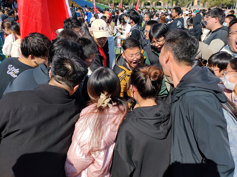 今日的操场是如此的迷人,它的美不是因为秋韵怡人,也不是因为阳光明媚,而是呐喊声中,师生间的融为一体;助威声中,同学们的凝心聚力。此时此刻,赛场上到处充斥着青春的魅力、散发着青春的荣光。画面是如此的激情澎湃,青春涌动!