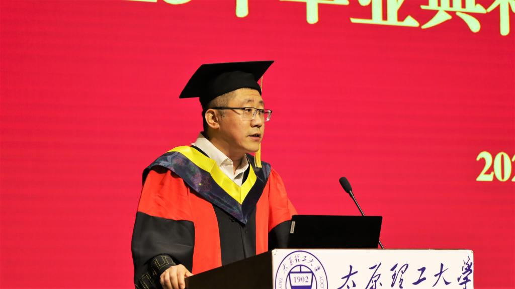 刘鹏副教授代表学院教师作了发言。向全体毕业生圆满完成学业,开启人生新阶段表示祝贺,肯定了同学们在大学期间的努力与进步,并对毕业生提出了四点期望:一是希望大家做好总结;二是希望大家做好规划;三是希望大家常怀仁爱感恩之心;四是希望大家热爱生活,保持身心健康。