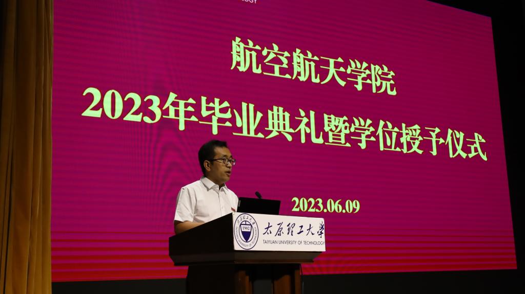 副院长(主持工作)李文辉向全体毕业生致辞,并对顺利毕业的同学表达了衷心的祝贺。作为特殊又幸运的一届毕业生,他希望大家胸怀“国之大者”,争当强国先锋;要勇于奋发有为,争做栋梁之材;要立志空天报国,争做复兴新人。继承好发扬好老一辈航空航天人的精神,与伟大时代同频共振,创造新时代的新辉煌!他指出,广大毕业生要勿忘母校培养之恩,常回家看看,学院、学校永远是学生们最坚强的后盾,祝愿毕业生们前程似锦、鹏程万里!