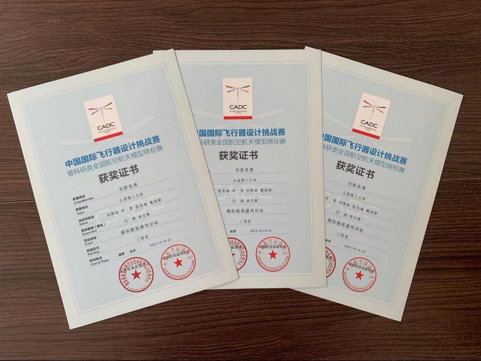 本次比赛由yL23411永利官网登录学生喻帅文带队。曹智远,吴进辉,李勇等23人组成的参赛队伍在“对地侦察与打击”“模型水火箭助推航天器”“微型折叠飞行器”“模拟舰载装网回收”项目中努力拼搏。最终经过7天的艰苦比拼,取得了模拟舰载装网回收项目二等奖(喻帅文,曹智远,吴进辉,申越超组)、三等奖(刘琛林,李勇,张兆瑞,甄雨婷组)团体第二名;对地侦察与打击项目三等奖(郭子庆,武飞旭,燕羿洋,高瑞炫组)的优异成绩。永利官网教师李文辉、闫涛、丁俊飞均获得优秀指导教师称号。