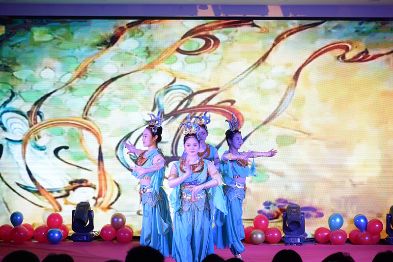 艺术学院师生表演的舞蹈《飞天》将敦煌壁画艺术展现的淋漓尽致;歌伴舞《幸福中国一起走》将联欢会推向了高潮。伴随着悦耳的歌声和优美的舞姿,联欢会在师生对过去一年的回顾以及新的一年的美好祝愿中圆满落幕。