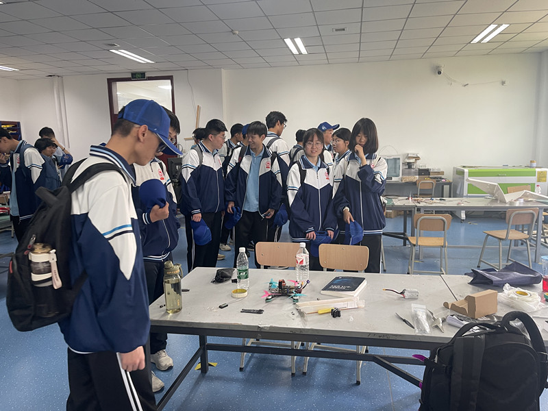 如果说飞行模拟器让大家在“虚拟世界”翱翔蓝天,航模飞行则让人们更加真实的感受飞行乐趣。模拟飞行体验结束后,同学们来到创新创业基地,基地是学院开展大学生科技创新活动的主要场所,航模协会是基地常驻大学生兴趣社团之一。活动中,航模协会的同学们给大家科普了航模制作的基本原理,并展示了协会成员制作的航空模型和近年来获得的各项荣誉,经纬中学的同学们零距离接触航模,感受丰富多彩的大学生活。