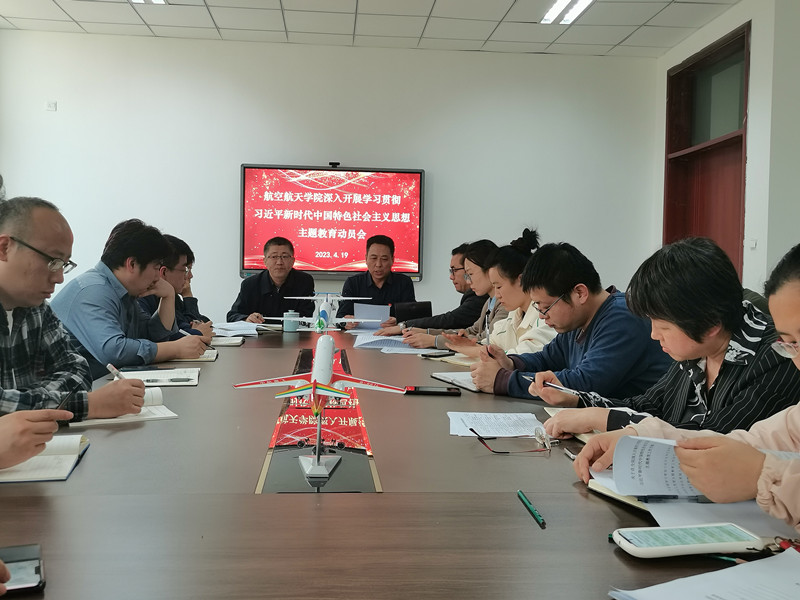 2023年4月19日,在航空航天学院四层会议室,召开学习贯彻习近平新时代中国特色社会主义思想主题教育动员会,学院党委书记王银兵作动员讲话,副院长(主持工作)李文辉主持会议,支部书记、教师党员及全体教职工参加会议。