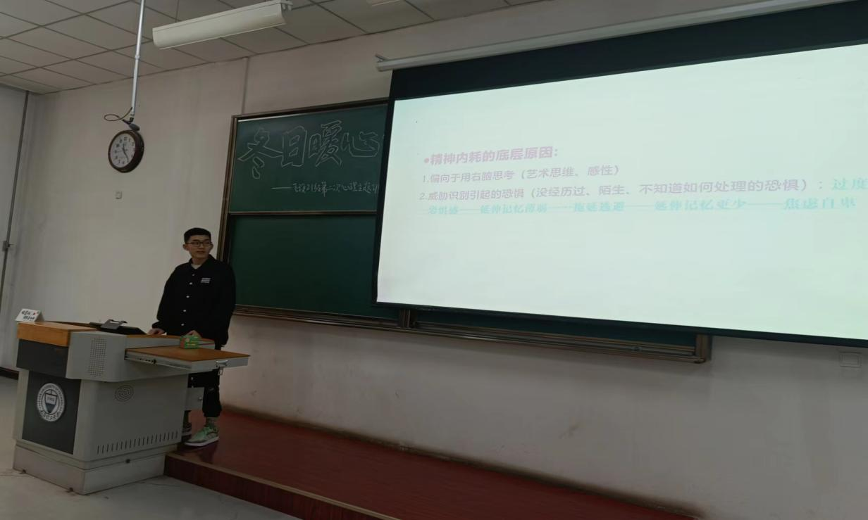 健康的心理是一个人全面发展必须具备的条件和基础。为全面贯彻党的教育方针,更好地促进大学生科学文化素养和身心健康素质协调发展,营造人人了解心理健康、人人关注心理健康的氛围,yL23411永利官网登录于11月21-22日在20级和21级本科生中同步开展“冬日暖心”心理健康主题教育活动。活动围绕“摆脱精神内耗、充实健康心灵”这两个主题展开。